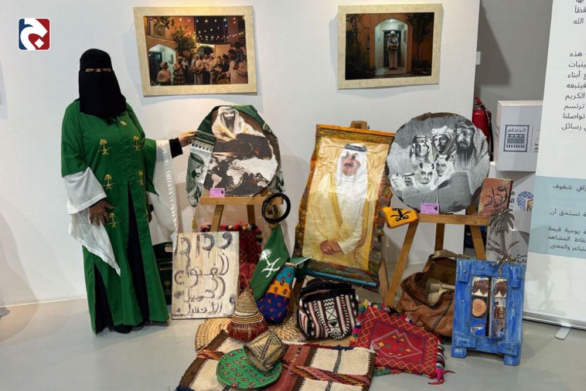 وشملت المعروضات باباً خشبياً قديماً مزيناً برسومات تحاكي العمارة التقليدية، بالإضافة إلى قطع من السدو والتحف التراثية النادرة المرتبطة بيوم التأسيس.