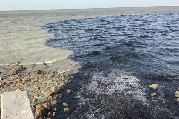بعد الحمراء.. ”بقعة سوداء“ تلوث مياه البحر بكورنيش سيهات