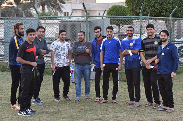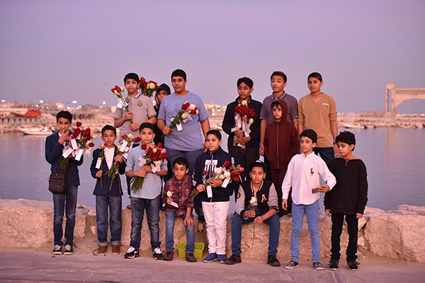 بالصور.. ”فتية آمنوا“ يوزعون الورد بمناسبة مولد النبي محمد في كورنيش القطيف