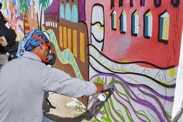 بالصور.. تشكيليات يزين صفوى بجداريات فنية في «ديرتنا ملونة»