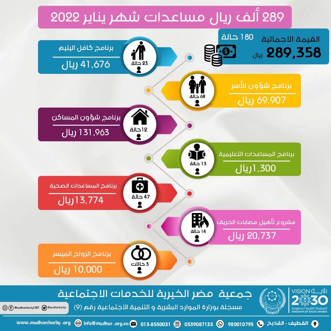 289 ألف ريال مصروفات ”مضر الخيرية“ في يناير