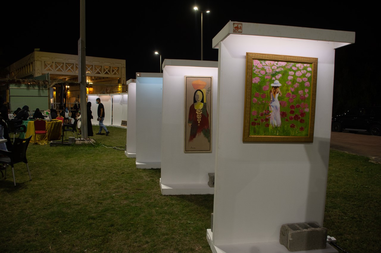 وتضمن الركن عرض عدد من اللوحات لفنانين متنوعي التوجهات والمدارس الفنية.