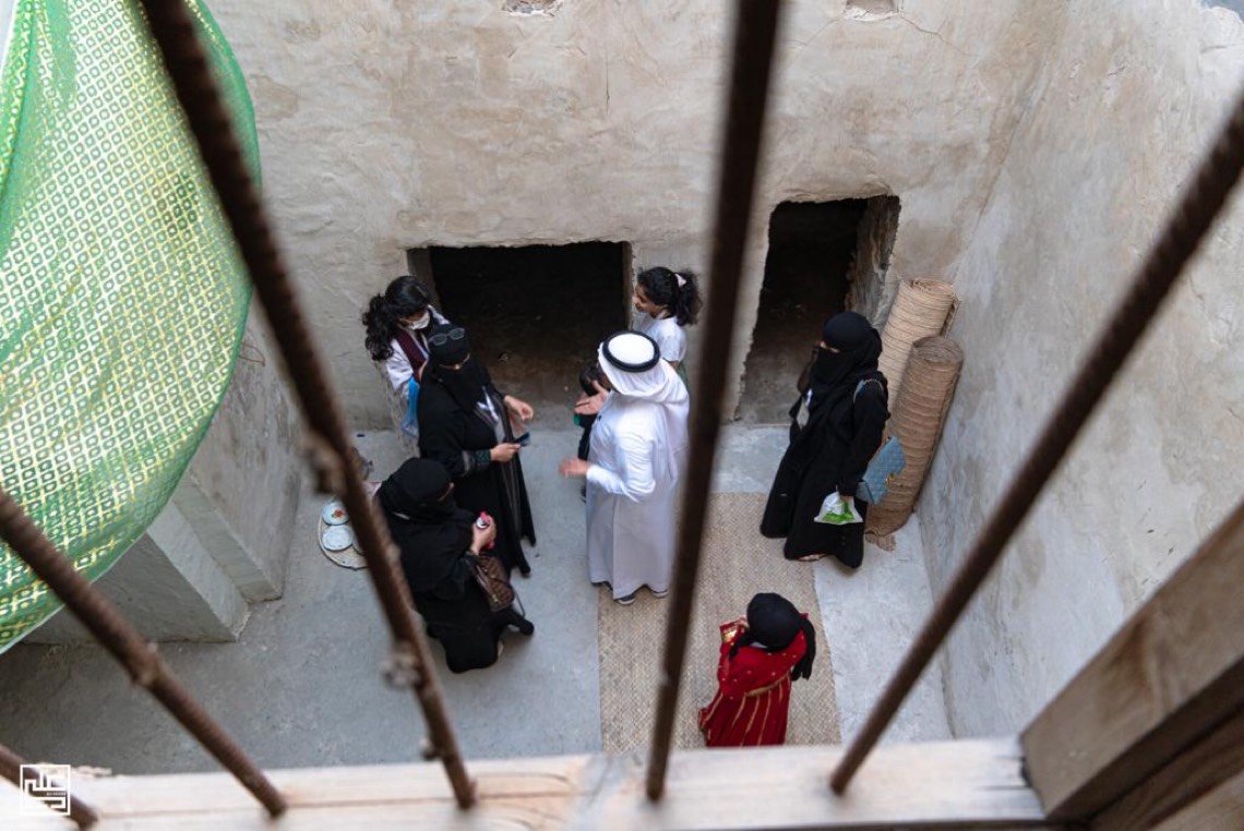 وقدمت ”زين“ نبذة مختصرة عن المفردات المعمارية والتي تميزت بأسلوب عفوي، متلقية المعلومات من الباحث الأثري اسماعيل هجلس.