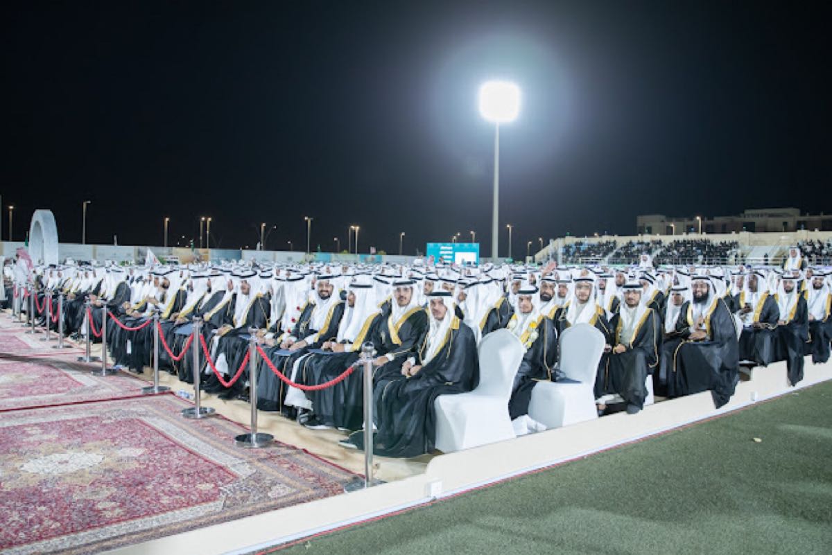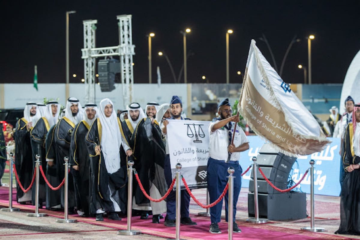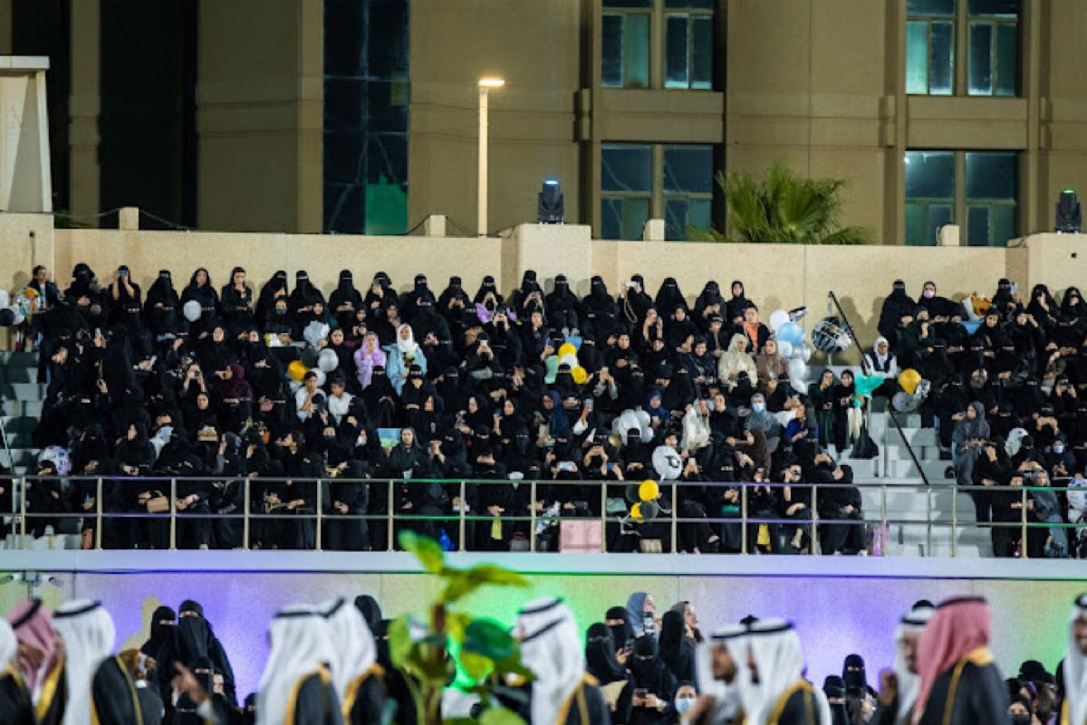 حضر الحفل رئيس الجامعة الأستاذ الدكتور عبدالله الربيش ونواب رئيس الجامعة وعمداء الكليات وأعضاء هيئة التدريس وضيوف الجامعة وأولياء الأمور من الرجال والسيدات في الاستاد الرياضي بالمدينة الجامعية.