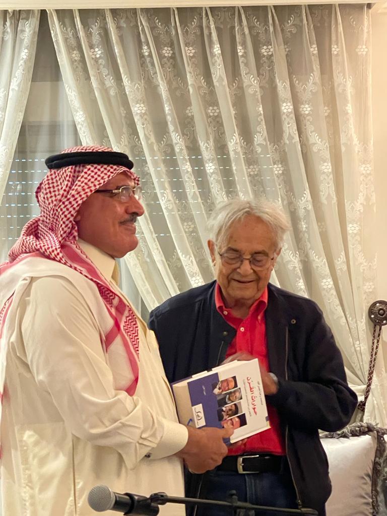 كما قدم الأديب نصرة كتابه حوارات القرن والذي جمع فيه حواراته الأثيرة مع المفكرين والأدباء كما قدم مجموعة من الشعراء اهداءات دواوينهم ومجموعاتهم للضيوف.