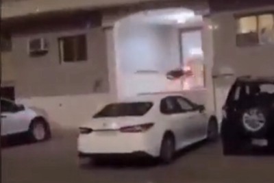 فيديو صادم.. شاب يقود دراجة نارية ويخترق مدخل عمارة
