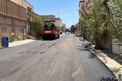 بمساحة 140000 م2.. صيانة إعادة سفلتة شوارع أم الساهك