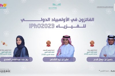 فاز طلاب مؤسسة الملك عبدالعزيز للموهبة والإبداع «موهبة»، ب 3 جوائز عالمية في منافسات ”أولمبياد الفيزياء الدولي“ 2023 باليابان، من بينهم الطالب مازن الشخص بالصف الأول الثانوي، من إدارة تعليم الأحساء والذي ظفر بميدالية برونزية. وحقق الطالب حسين قدح بالصف الثالث الثانوي، من إدارة تعليم جدة الميدالية البرونزية، فيما حصلت الطالبة روز السندي بالصف الأول الثانوي، من إدارة تعليم مكة المكرمة على شهادة تقدير. جاء ذلك بمشاركة 387 طالباً من 82 دولة،... |